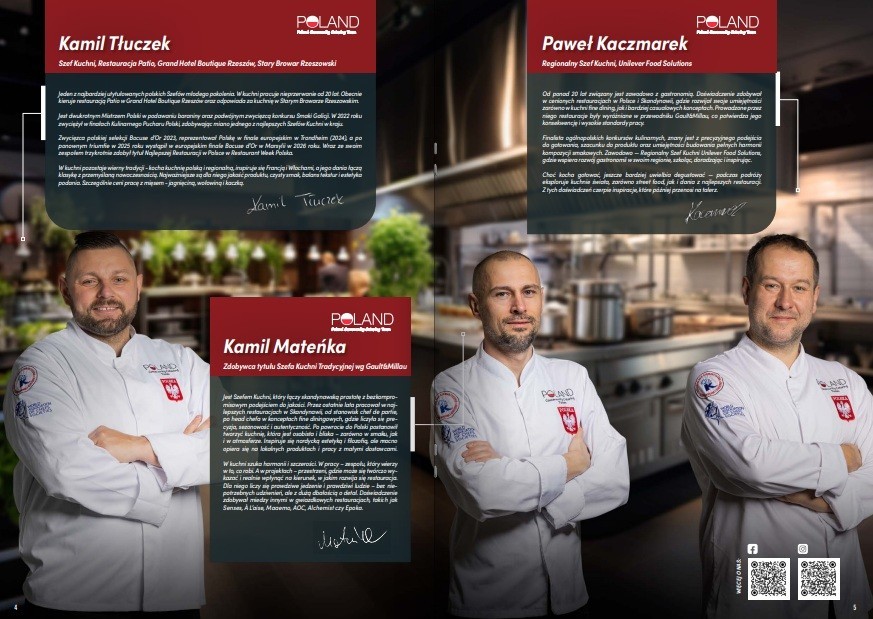 Gotują z nami Szefowie Kuchni-członkowie Poland Community Catering Team OSSKiC - drużyny reprezentującej Polskę na Kulinarnym Pucharze Świata 2026: Kamil Tłuczek, Piotr Kuzdro, Kamil Mateńka, Krystian Cydejko i Paweł Kaczmarek.
